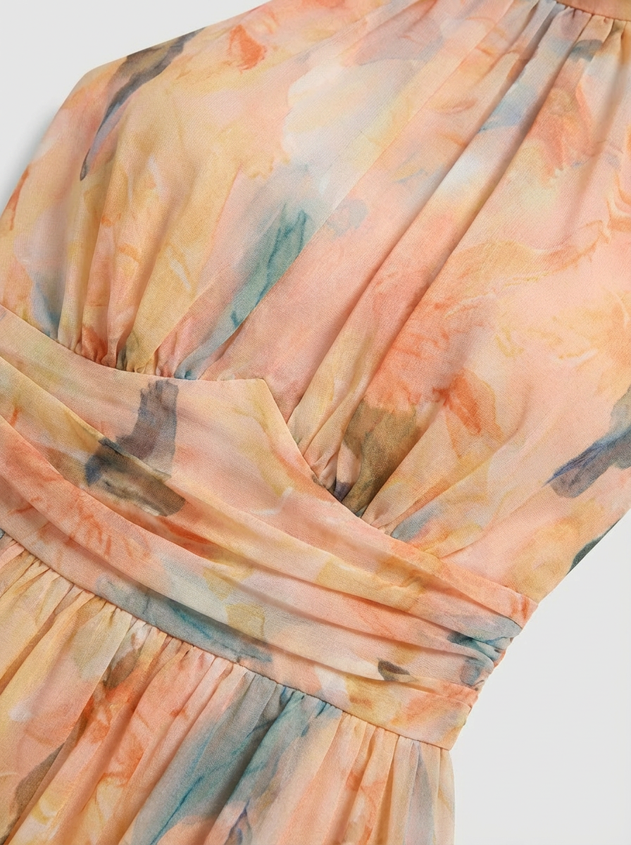 Women's Maxi Dress with Floral Pattern and Halter Neck